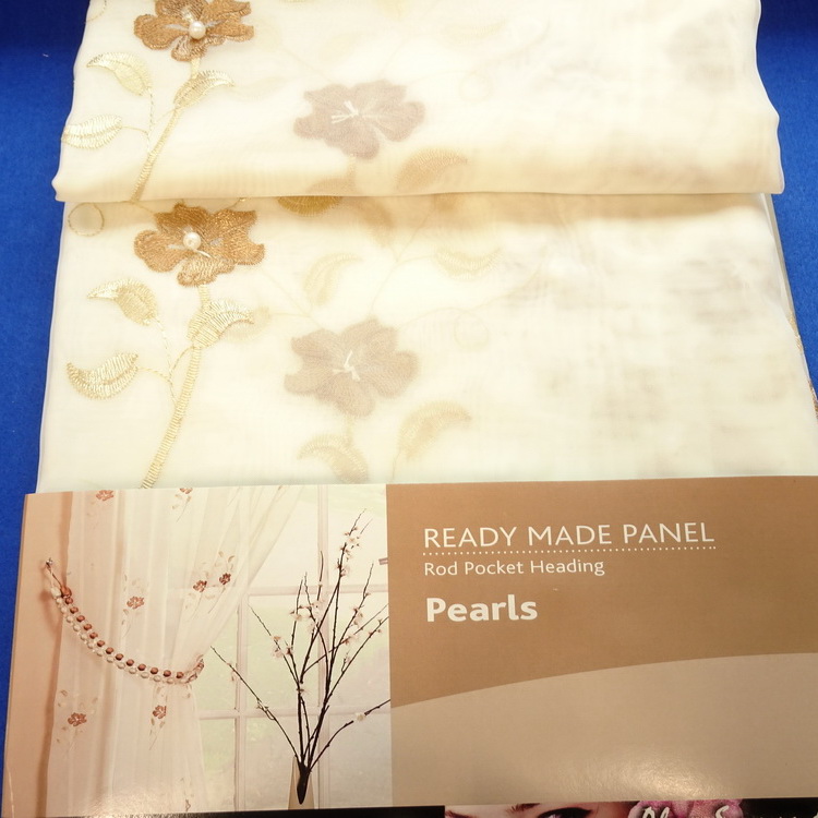 Single Floral Voile Panel- Pearls- 90"(229cm) Drop x 57"(145cm) Wide