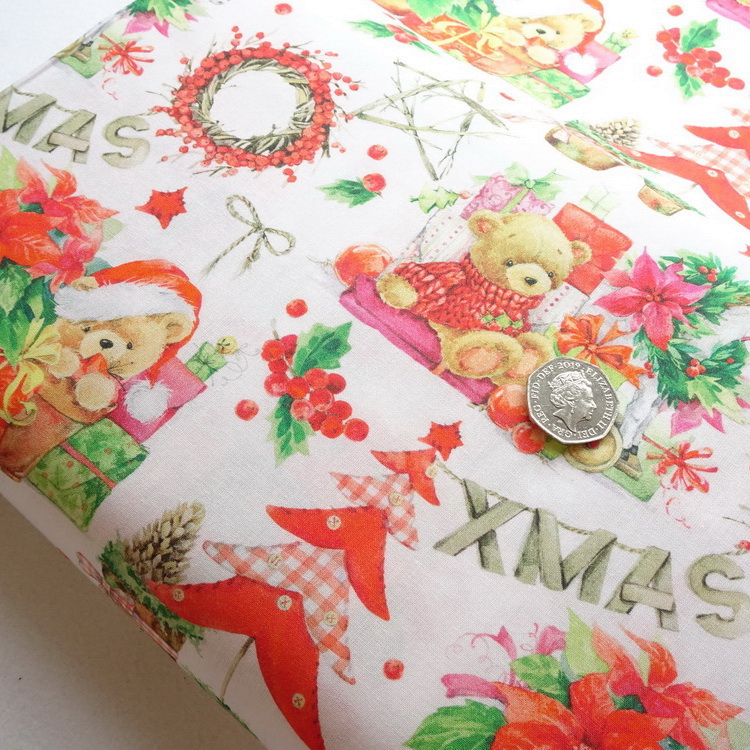 100% Cotton Digital Print- Christmas Teddies- 150cm / 59" Wide