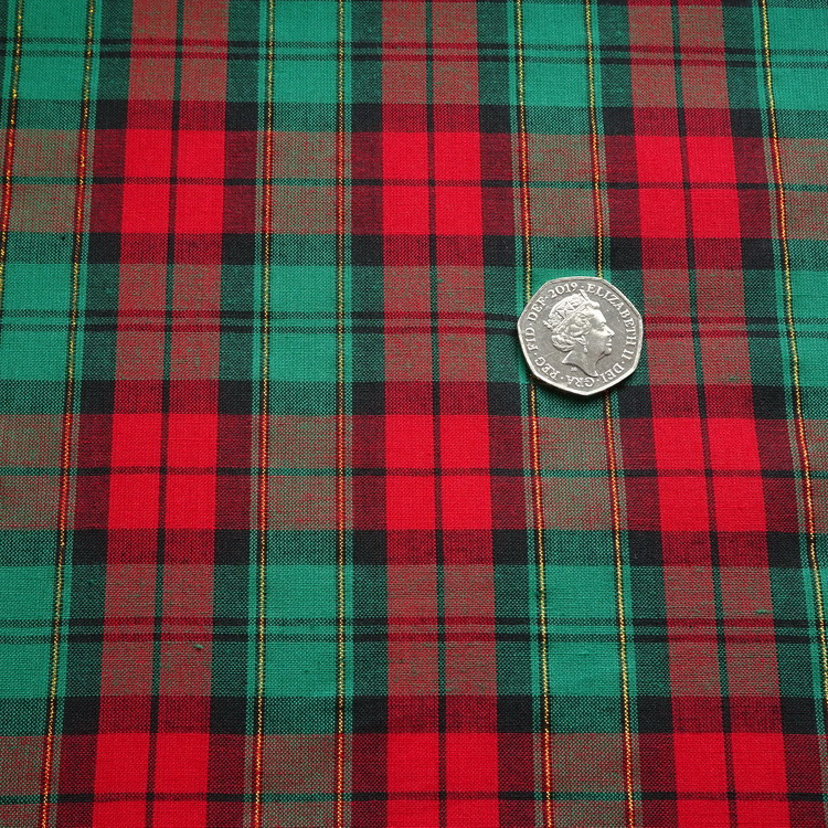 100% Cotton & Lurex - Christmas Tartan - Red & Green - 112cm/44" Wide