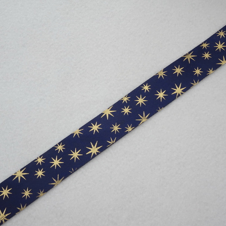 Berisfords Polyester Satin Ribbon- Navy & Gold Stars- 25mm/50mm/65mm
