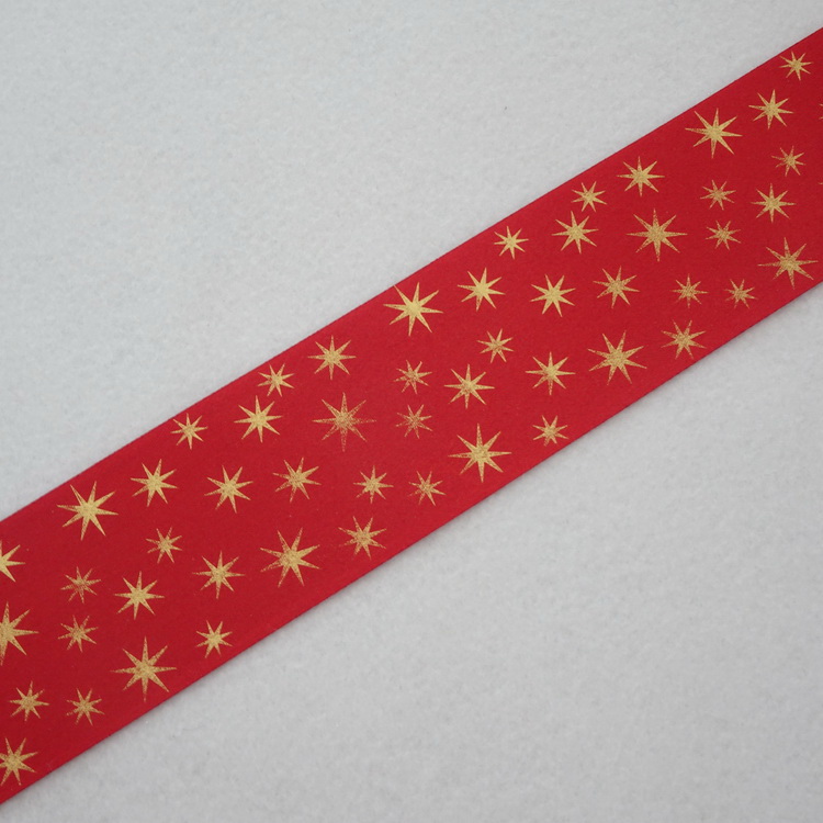 Berisfords Polyester Satin Ribbon- Red & Gold Stars- 35mm/65mm