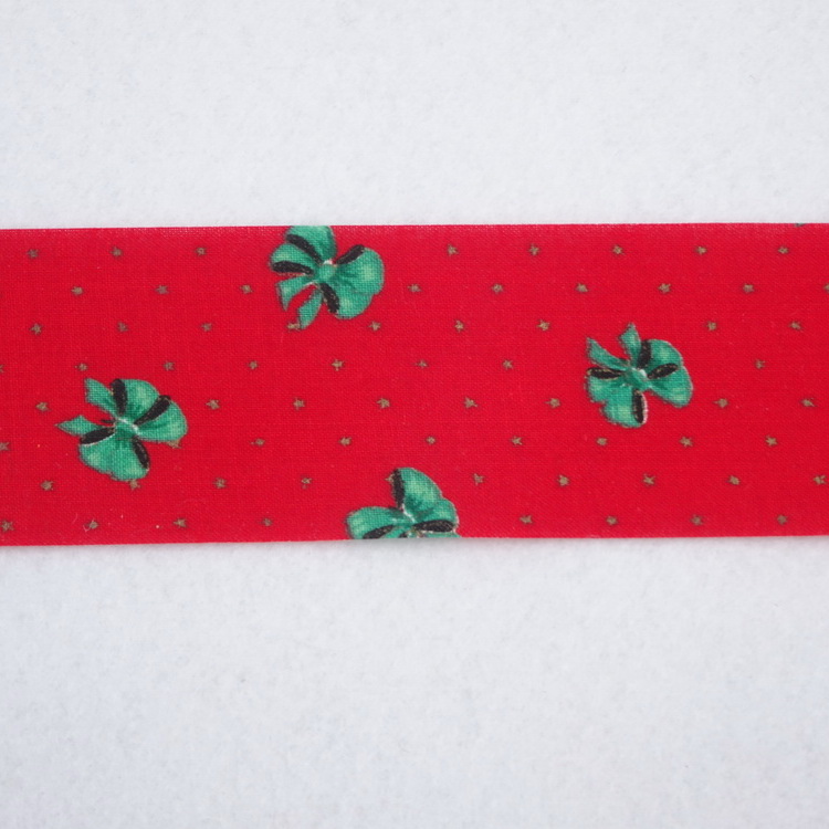 Craft Ribbon- Red With Green Bows- 45mm & 65mm Width