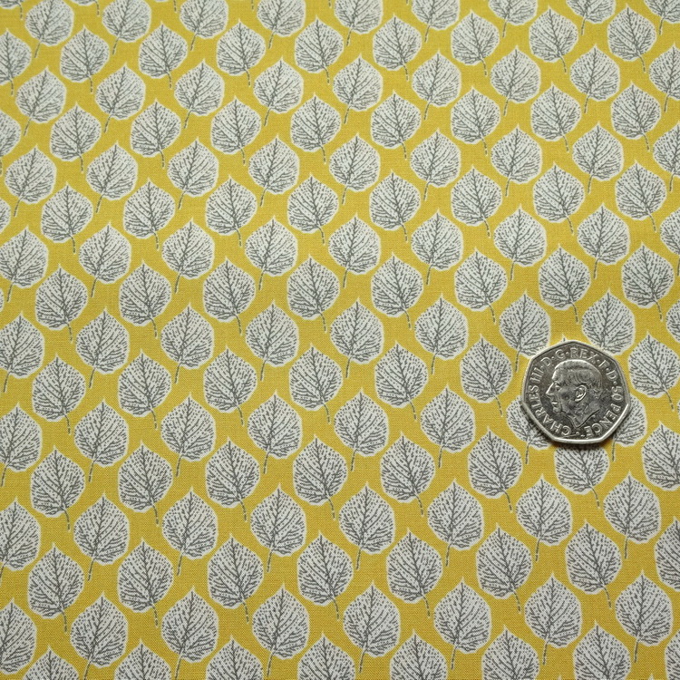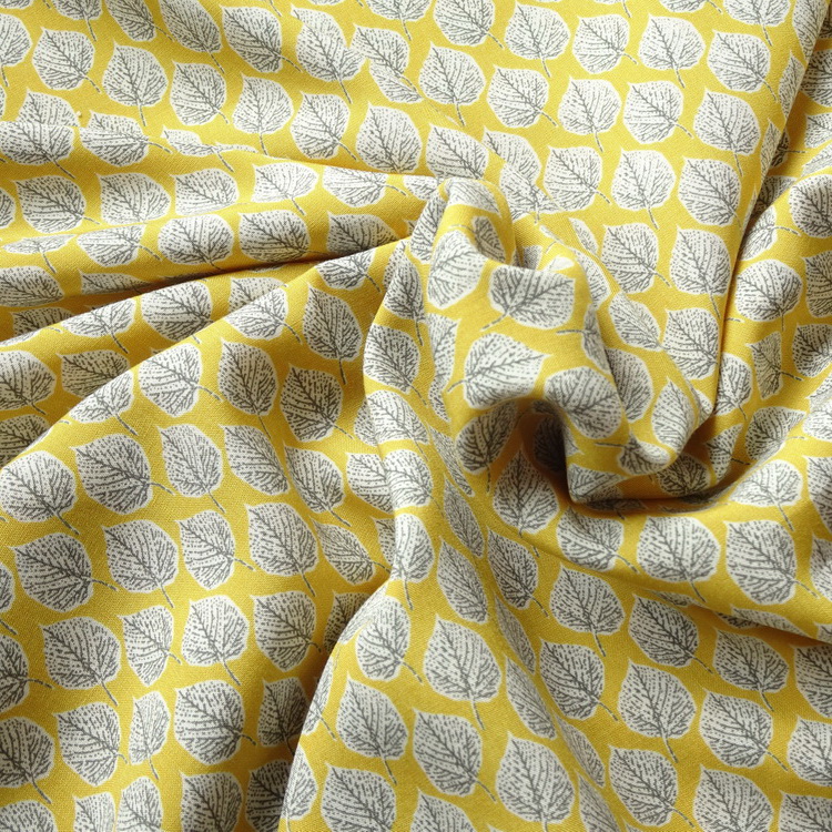 100% Ananda Viscose- Yellow Leaf Print- 140cm/55" Wide