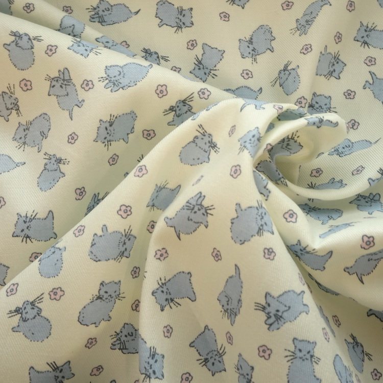 Colour- Ivory Background With Blue Cats and Pink dainty flowers -