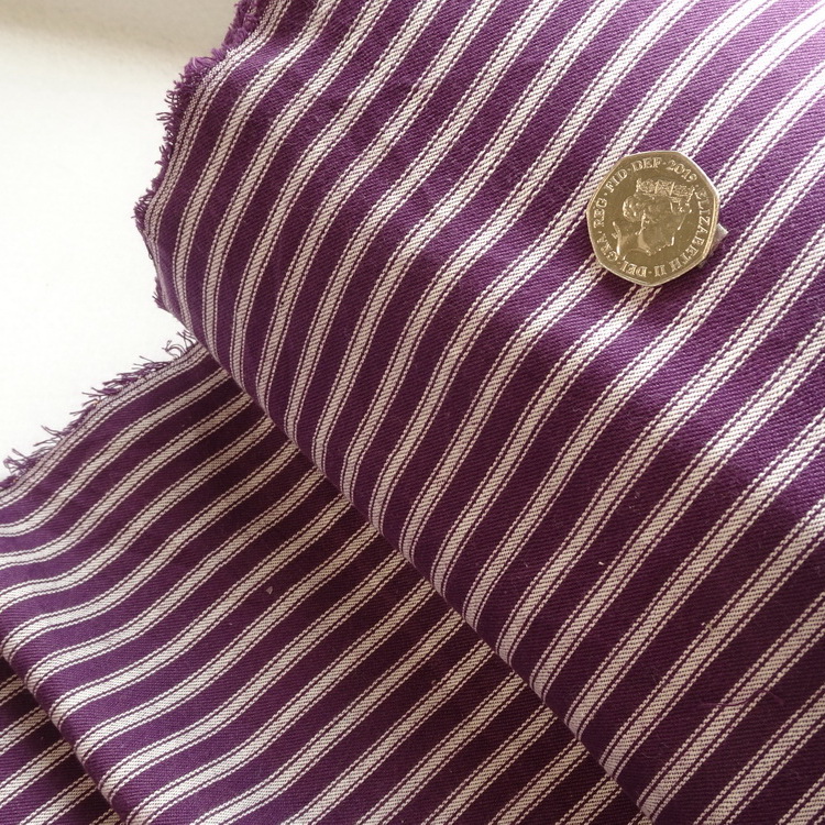 DescriptionTicking Stripe fabric is usually made from 100% cotton or a blend of cotton and linen yarns in a herringbone weave. In a ticking stripe you have the central coloured, thick stripe with a thin stripe either side usually in the same colour – this gives the illusion of a wider stripe-