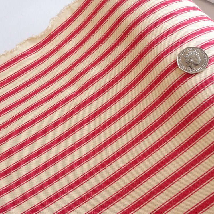 DescriptionTicking Stripe fabric is usually made from 100% cotton or a blend of cotton and linen yarns in a herringbone weave. In a ticking stripe you have the central coloured, thick stripe with a thin stripe either side usually in the same colour – this gives the illusion of a wider stripe. Stripes are 8mm.