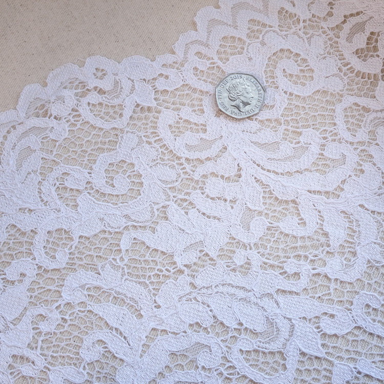 100% Polyester Raschel Corded Lace- White- 150cm/59" Wide