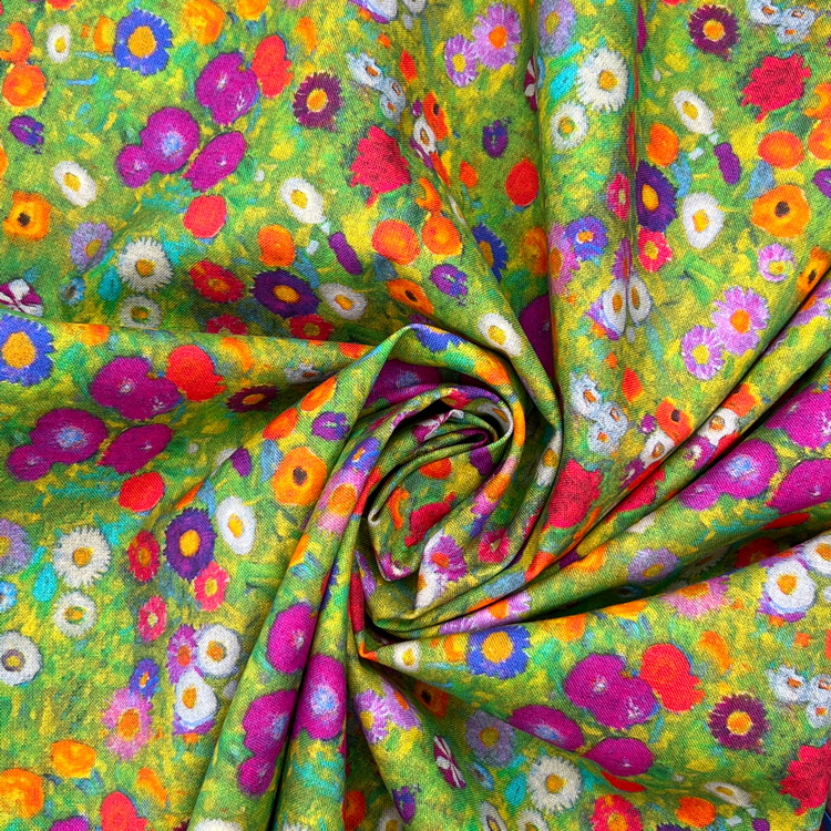 Chatham Glyn 100% Cotton - Klimt's Garden Flowers - Green - 140cm/55" Wide