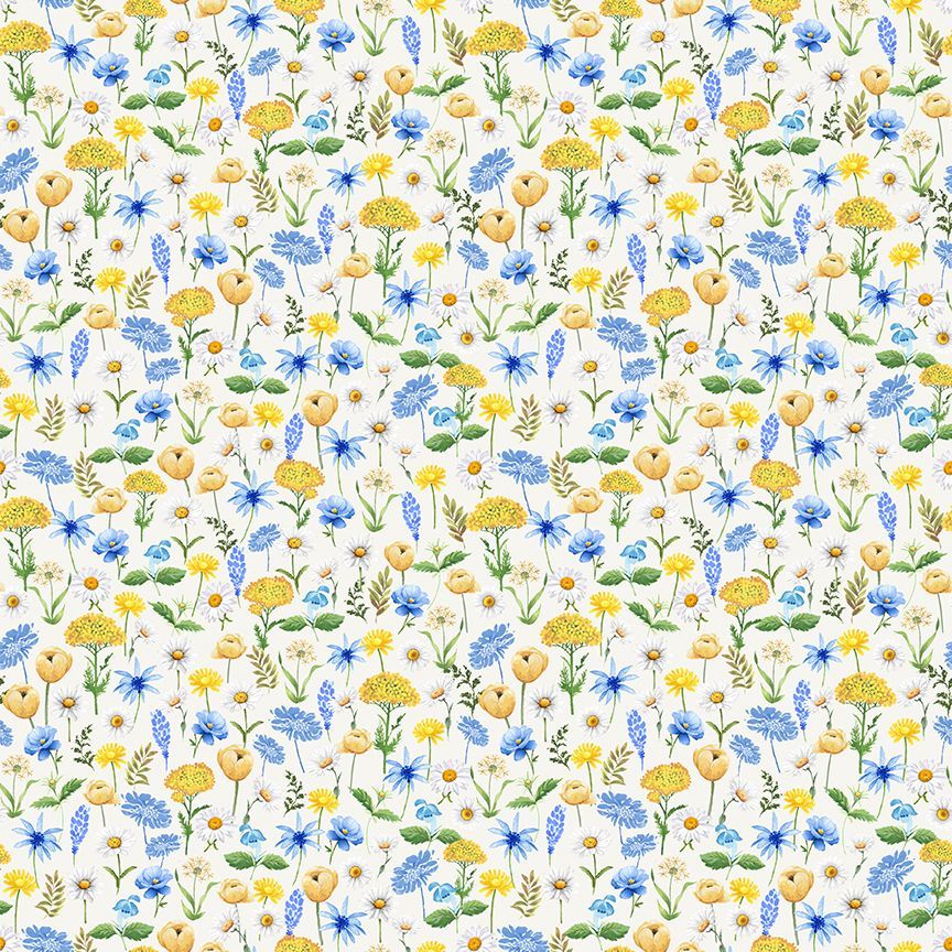Colour- Yellow and Blue Flowers On A Cream Background-