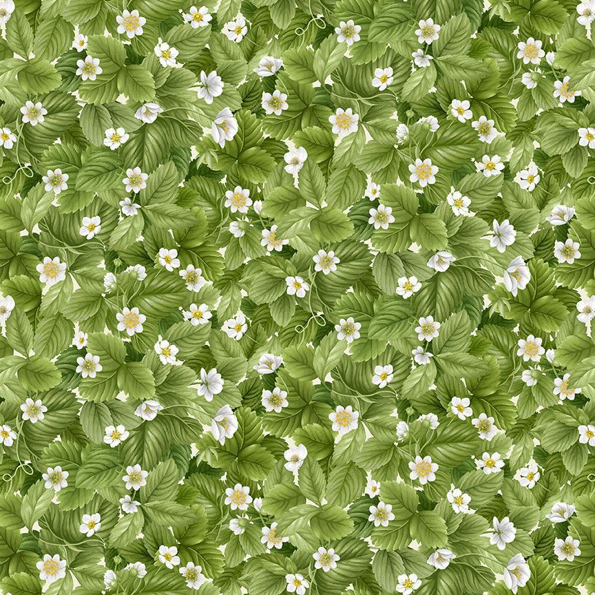 100% Cotton Digital Print - Packed Strawberry Leaves - Timeless Treasure - 114cm / 45" Wide