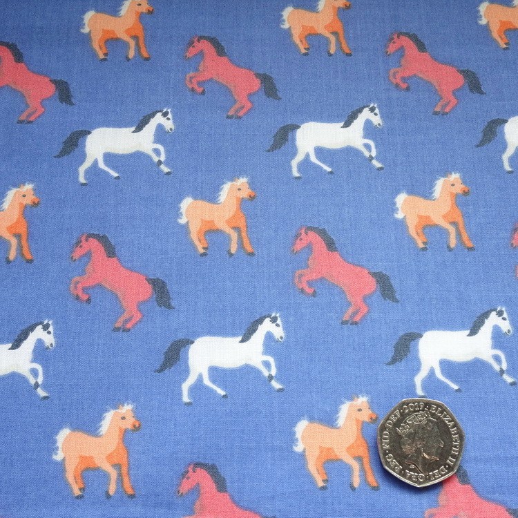 65% Poly 35% Cotton- Horses- 112cm/44" Wide- Blue