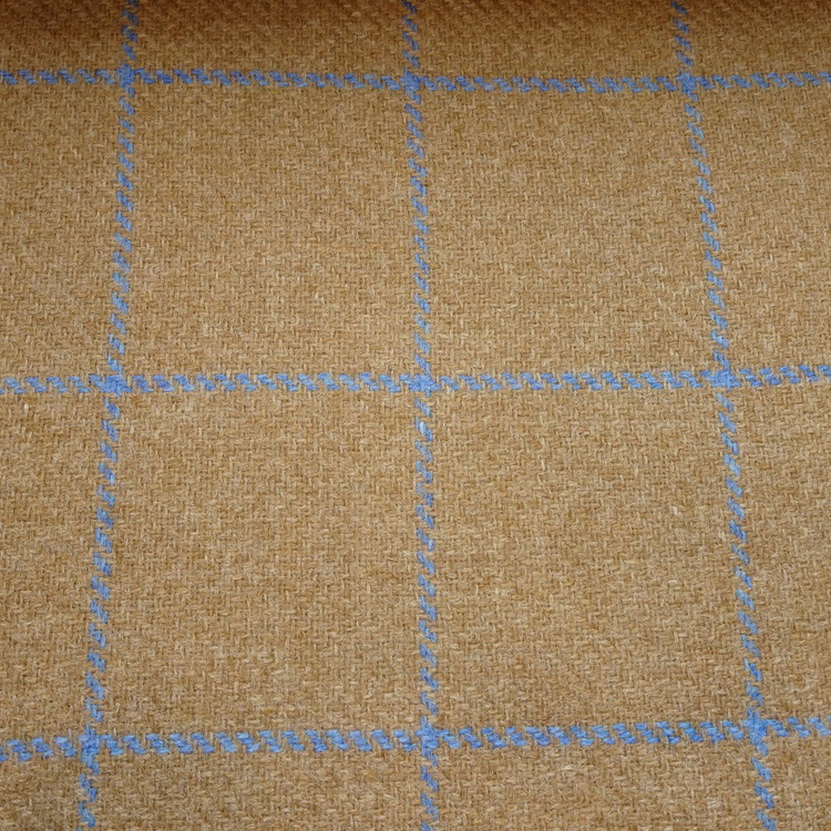 100% Pure Wool - Beige & Blue Check - 150cm/59" Wide - Made in UK