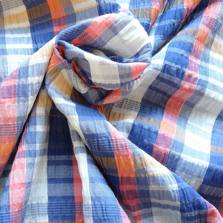 Cotton Viscose Seersucker Check- Blue And Pink- 135cm/54" Wide