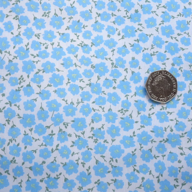 80% Poly 20% Cotton- Floral Print- 110cm/43" Wide- Blue