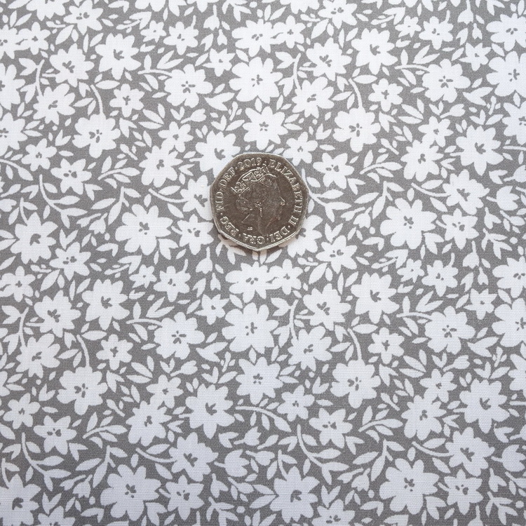 80% Poly 20% Cotton- Floral Print- 110cm/43" Wide- Grey