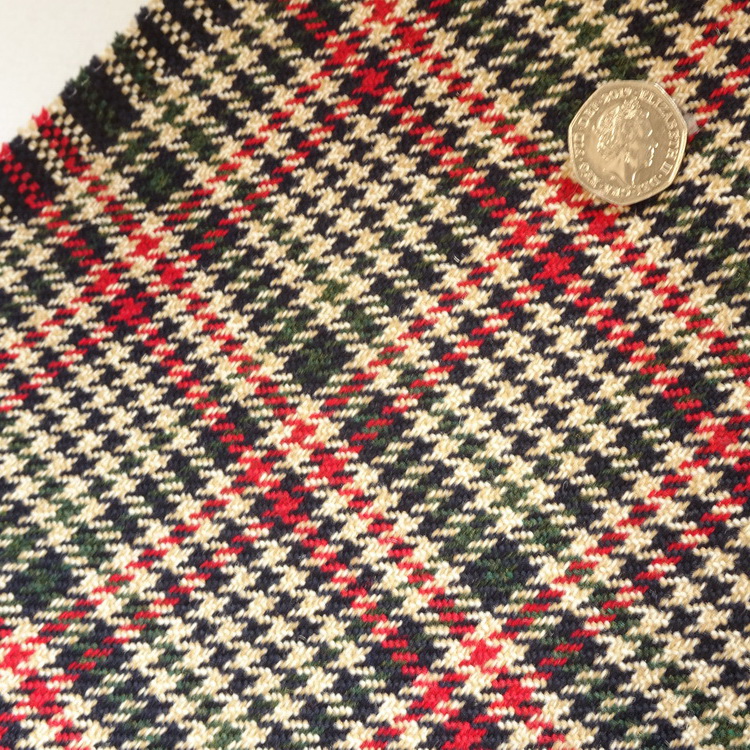 100% Pure Wool- Oatmeal, Brown & Red Check- Sample