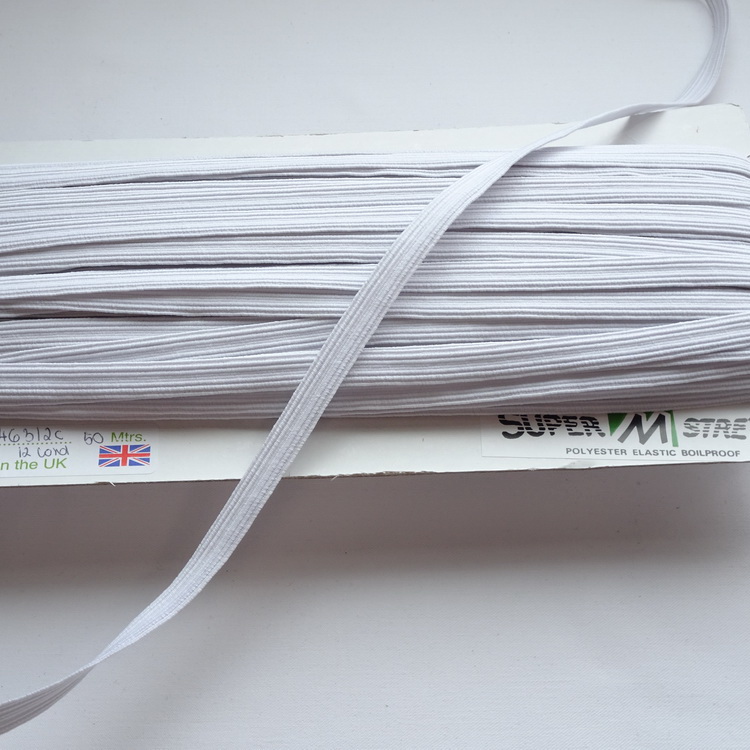Boil Proof Flat Elastic - 10mm Wide / 12 Cord - White