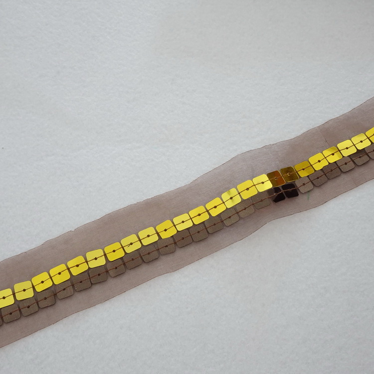 Flat Gold And Brown Sequins On A Brown Chiffon Ribbon-