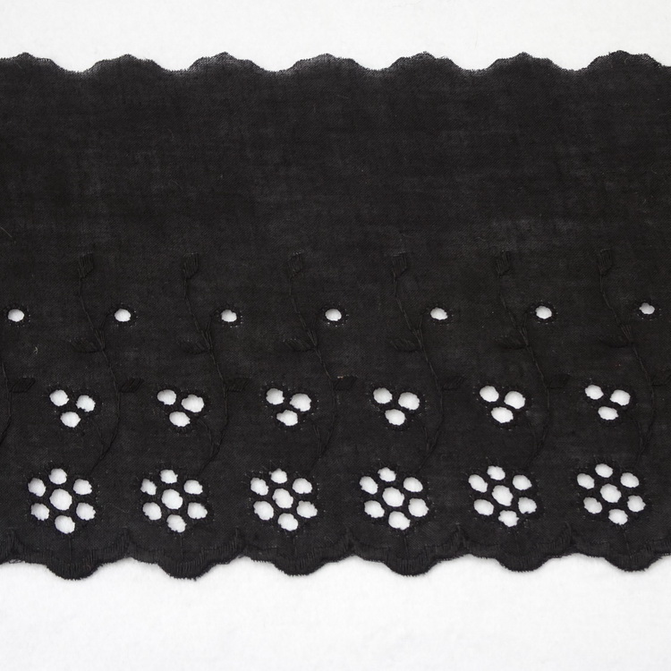 Flat Black Broderie Anglaise Lace - 140mm Wide