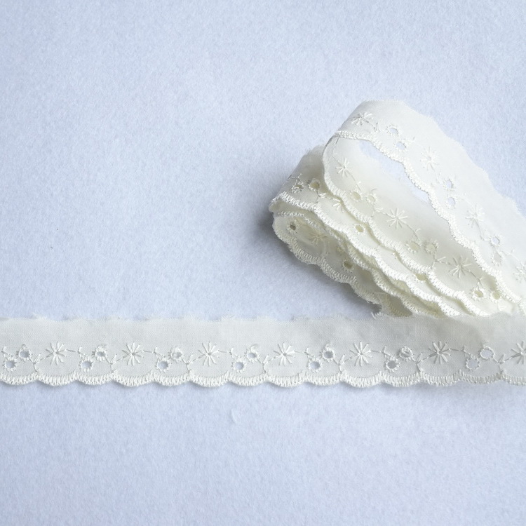 Flat Broderie Anglaise Lace - Cream - 25mm Wide