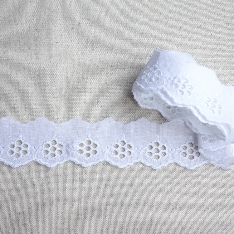 Flat White Broderie Anglaise Lace - 40mm Wide