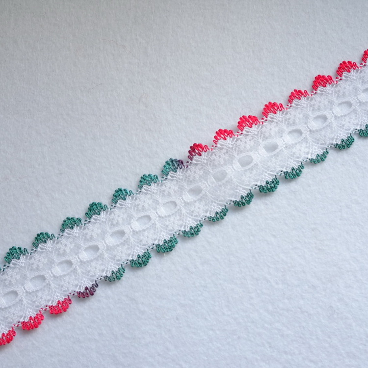 Knit in Eyelet Lace Lace - 30mm Wide - Red & Green