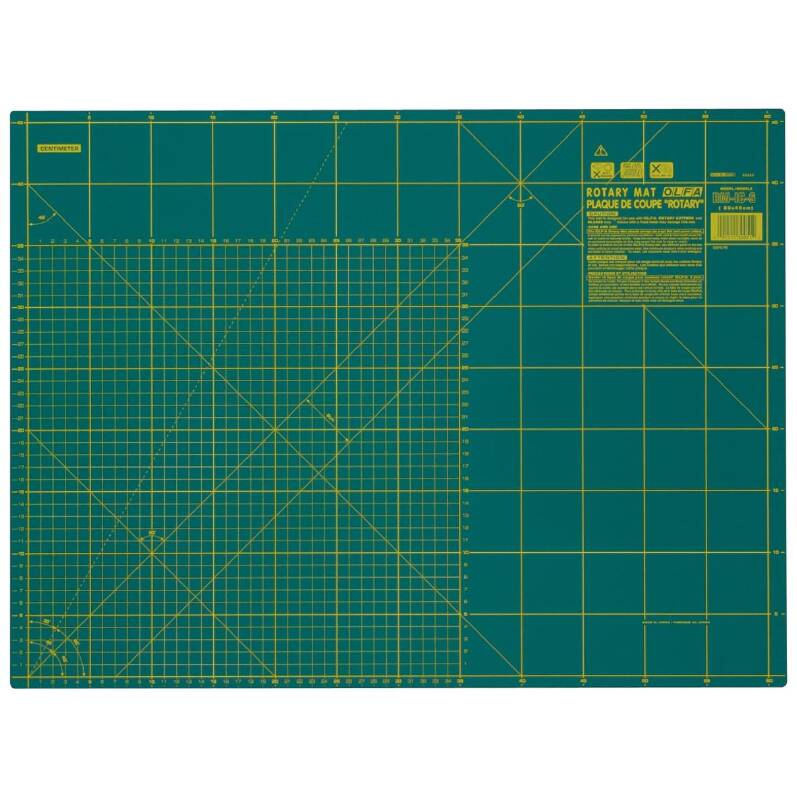 Professional quality cutting mat especially designed for use with OLFA rotary cutters. Double-sided use with a metric grid on one side and an imperial grid on the other.