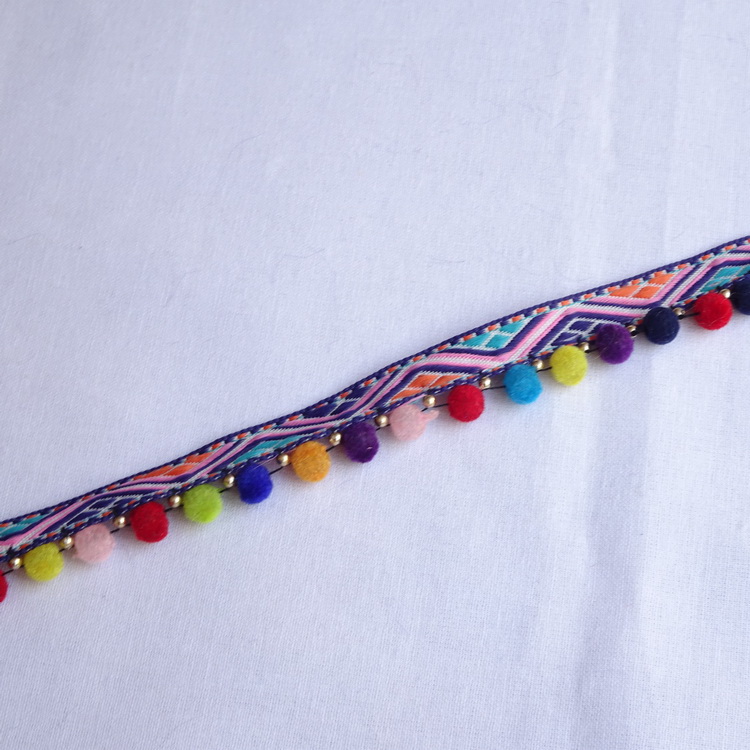 Multi Coloured Pom Pom / Bead / Aztec Braid Trim-