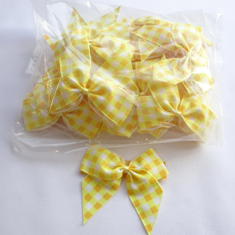 Berisfords Grosgrain Ribbon - Yellow Gingham Stick On Bows - 15 Per Pack