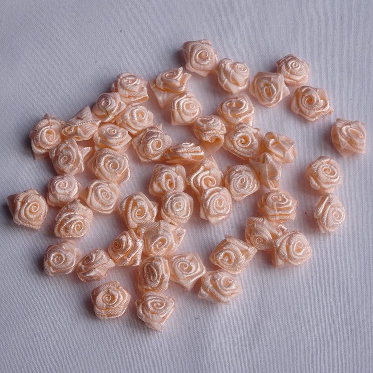 Small Peach Satin Ribbon Roses-