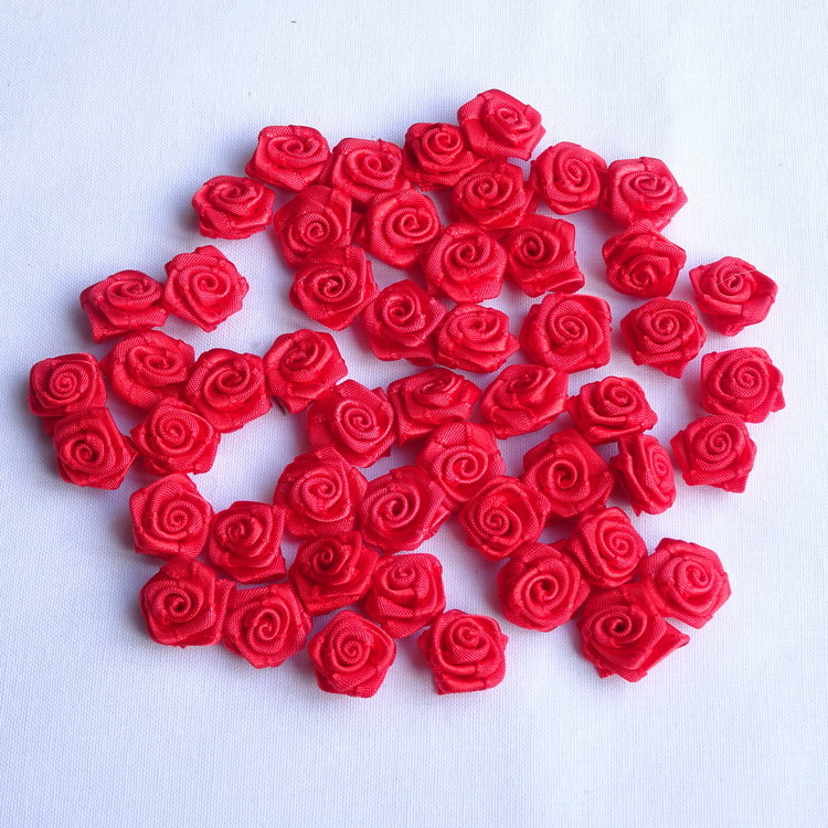 Small Red Ribbon Roses - 15mm Across - 50 Per Pack