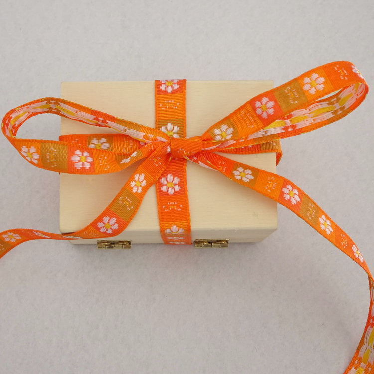 Embroidered Daisy Ribbon - Orange - 10mm Wide