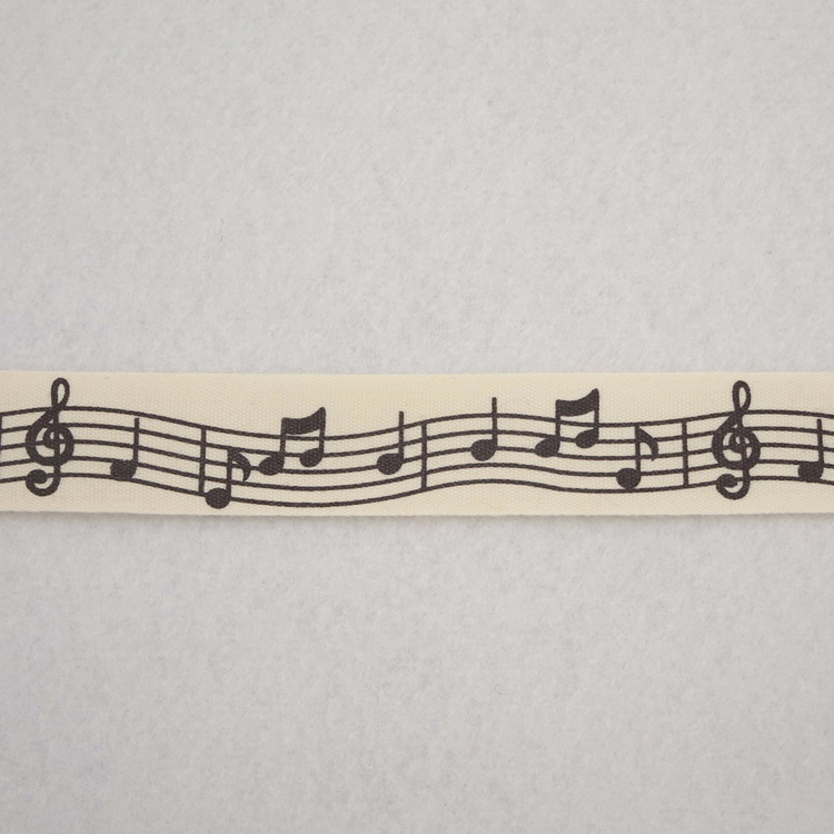 Natural Cotton Ribbon - Musical Notes - 20mm Wide