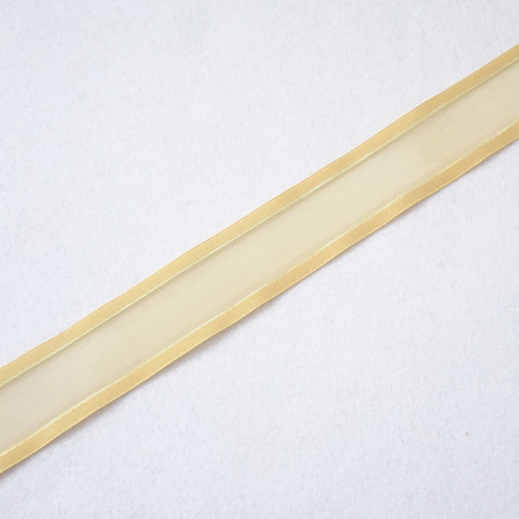 Chiffon Ribbon With Satin Edge And Gold Thread -