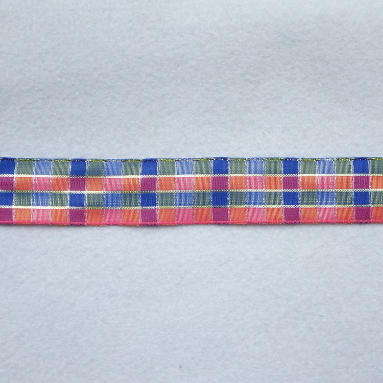 Polyester Ribbon - Pink, Silver & Blue Check - 25mm Wide