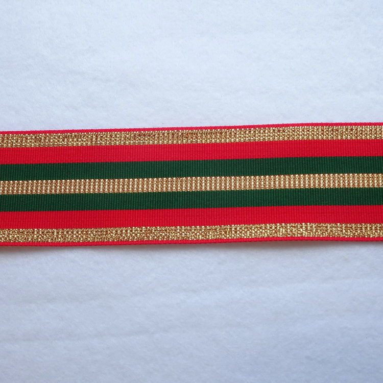 Gros Grain Ribbon - Red, Green & Gold Stripe - 50mm Wide
