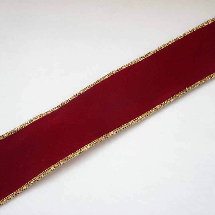 Wire Edged Velvet Craft Ribbon- 50mm/65mm- Wine With Gold Metallic Edge
