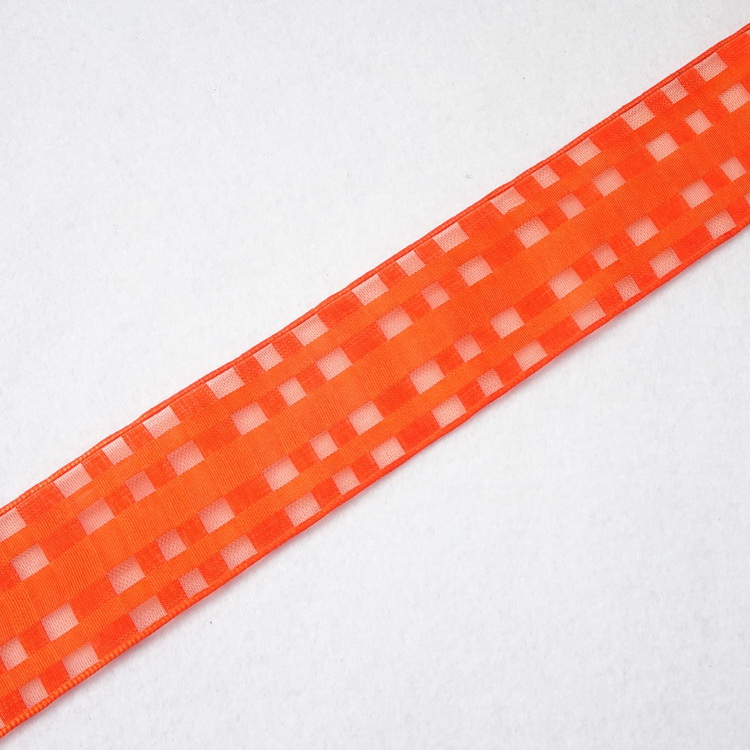 Wired Chiffon Check Ribbon- 25mm/40mm- Orange