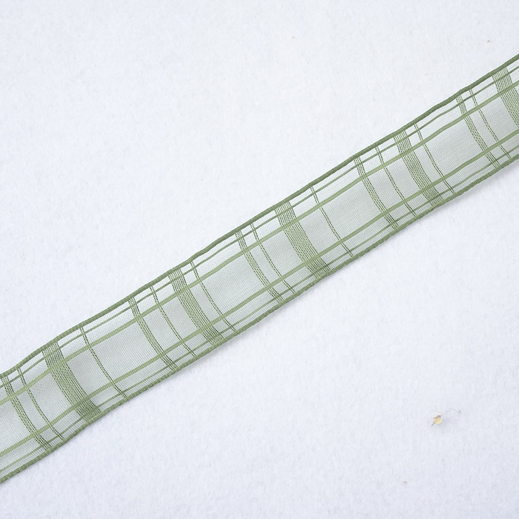 Wired Chiffon Check Ribbon- 25mm/40mm- Green