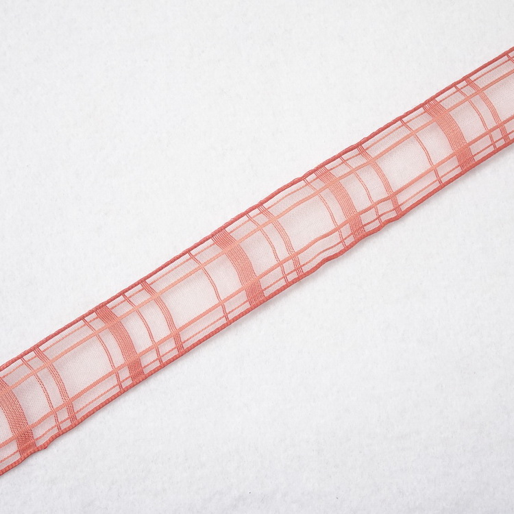 Wired Chiffon Check Ribbon- 25mm/40mm- Tan