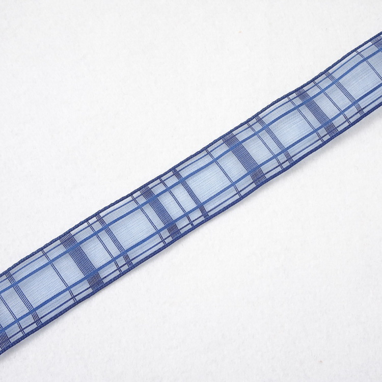 Wired Chiffon Check Ribbon- 25mm- Navy Blue