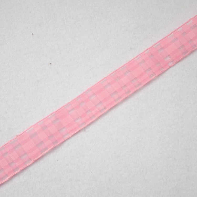Wired Chiffon Check Ribbon- 25mm- Pink