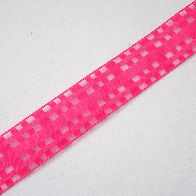 Wired Chiffon Check Ribbon- 40mm- Cerise