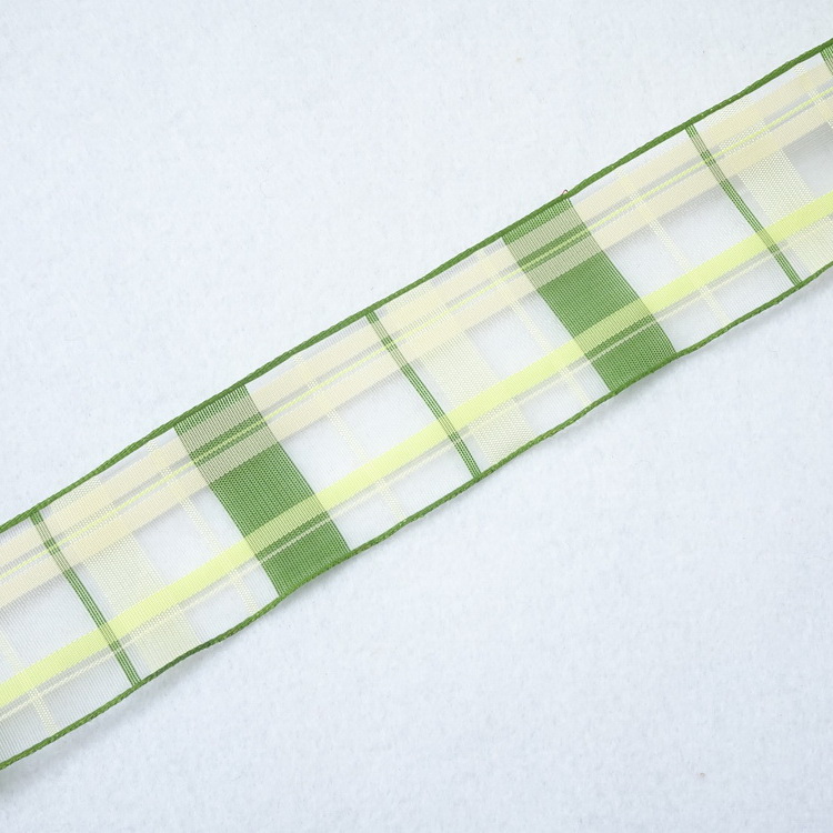 Wired Chiffon Check Ribbon- 40mm- Green