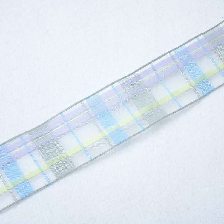 Wired Chiffon Check Ribbon- 40mm- Lilac