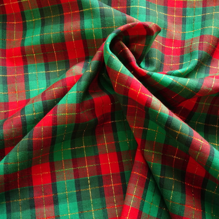 100% Cotton & Lurex - Christmas Tartan - Red & Green - Sample