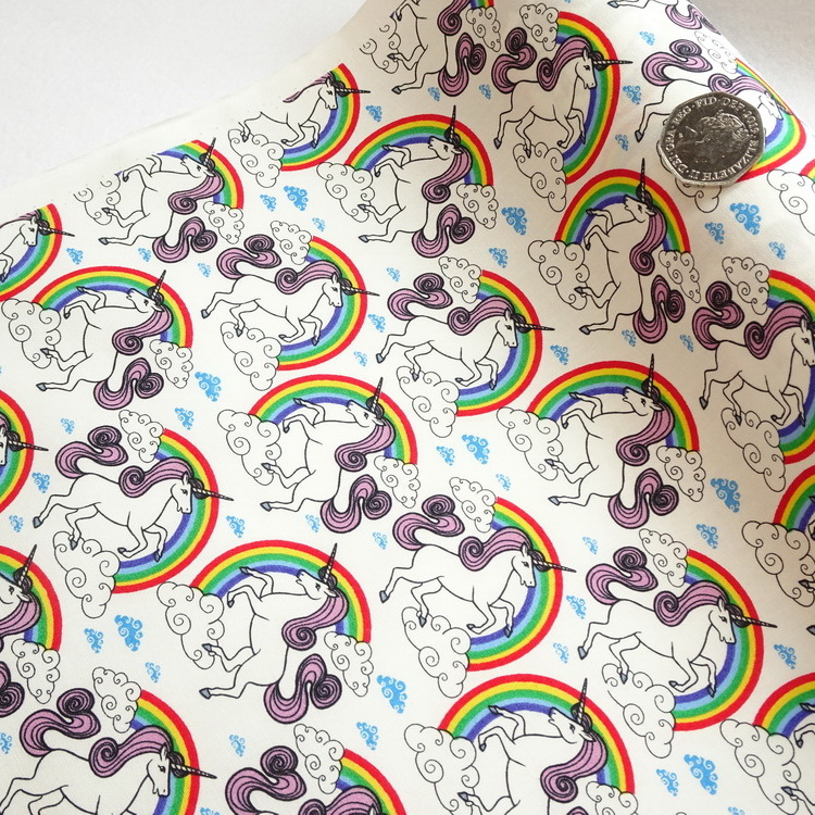 100% Cotton Poplin Remnant - Unicorns - White -112cm/44" Wide x 280cm/112" Length