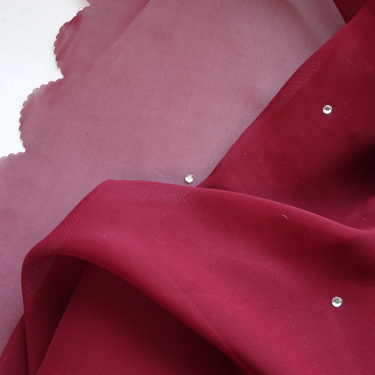 100% Polyester Chiffon Diamante Remnant- Wine- 100cm/39" Wide x 250cm/98" Length