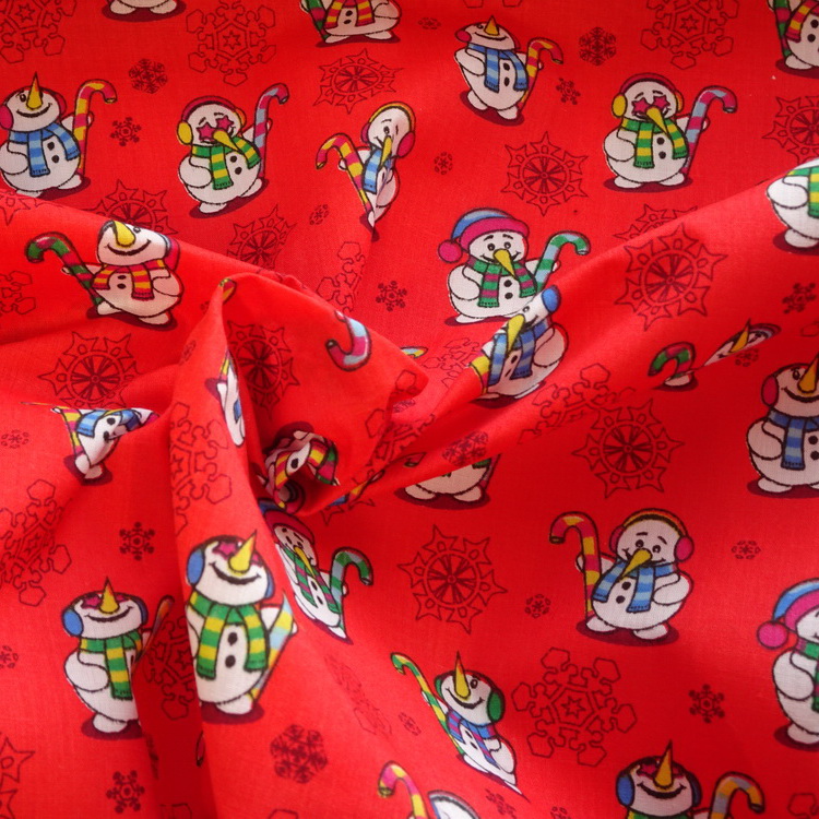 80% Poly 20% Cotton - Snowmen - Red - Sample