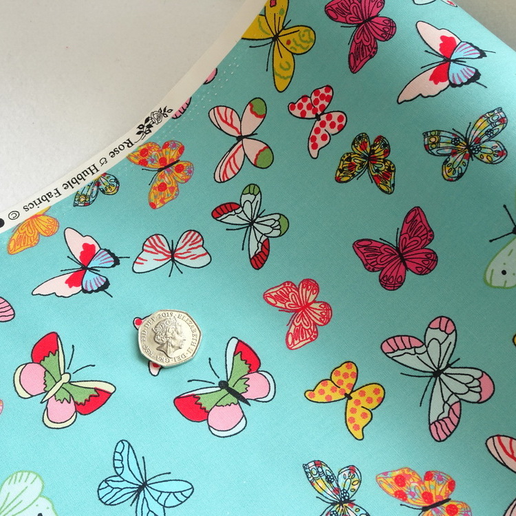 100% Cotton Poplin - Mint Green Butterfly Print - Sample
